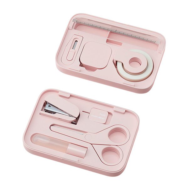 小回りの利く10cm定規。片側に金属板を採用し、カッター作業にも適しています。定規の下はミニケースとなっているので、付箋やクリップなどの小物の収納に便利です。